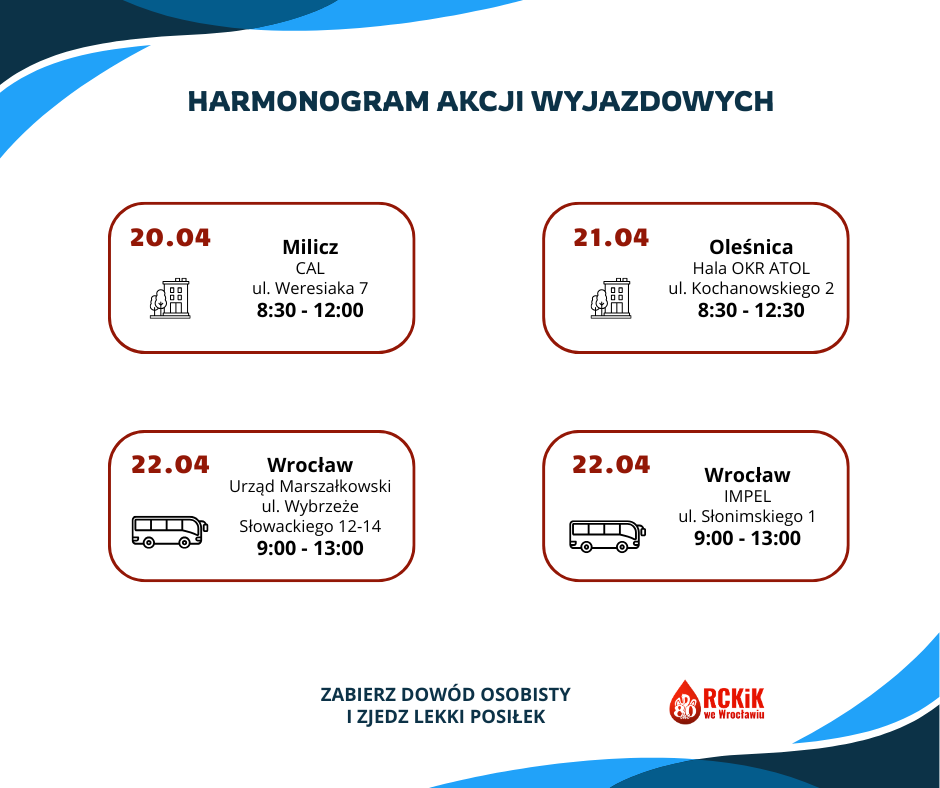 Lokalizacja: Pobieranie wymienionych grup krwi odbywa się wyłącznie stacjonarnie w siedzibie RCKiK we Wrocławiu oraz Terenowych Oddziałach w Głogowie, Legnicy i Lubinie.