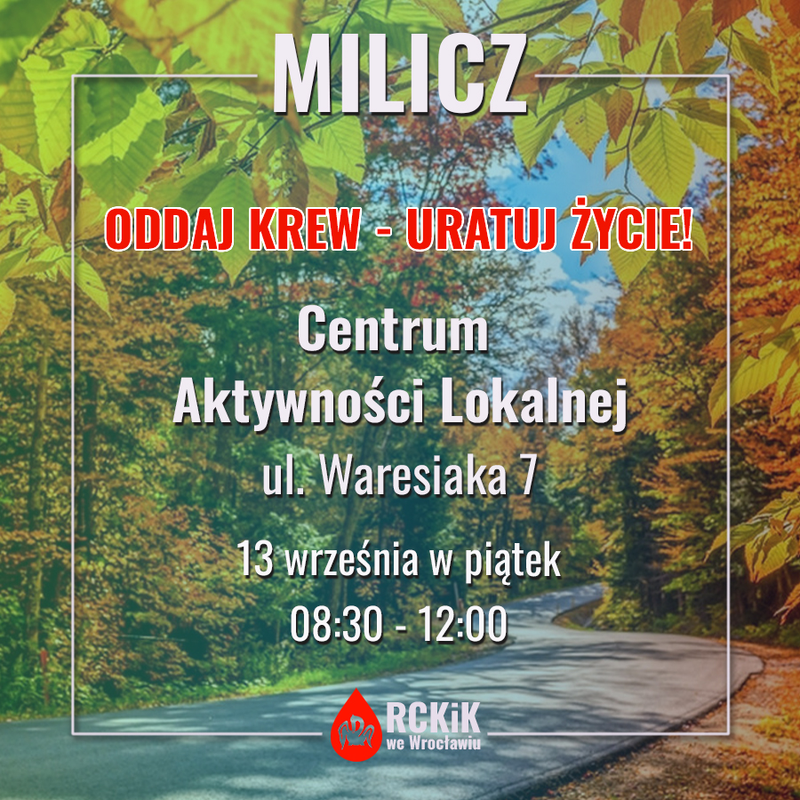 11.09.2024 » Akcja krwiodawstwa w Miliczu - 13.09.2024 r.