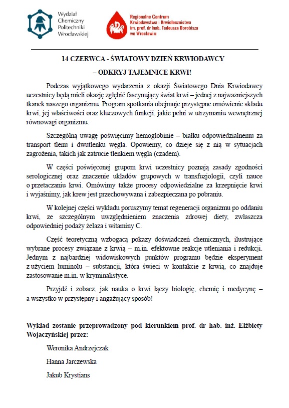 Już 14 czerwca 2025 r. zapraszamy Was do naszego Centrum Krwiodawstwa.