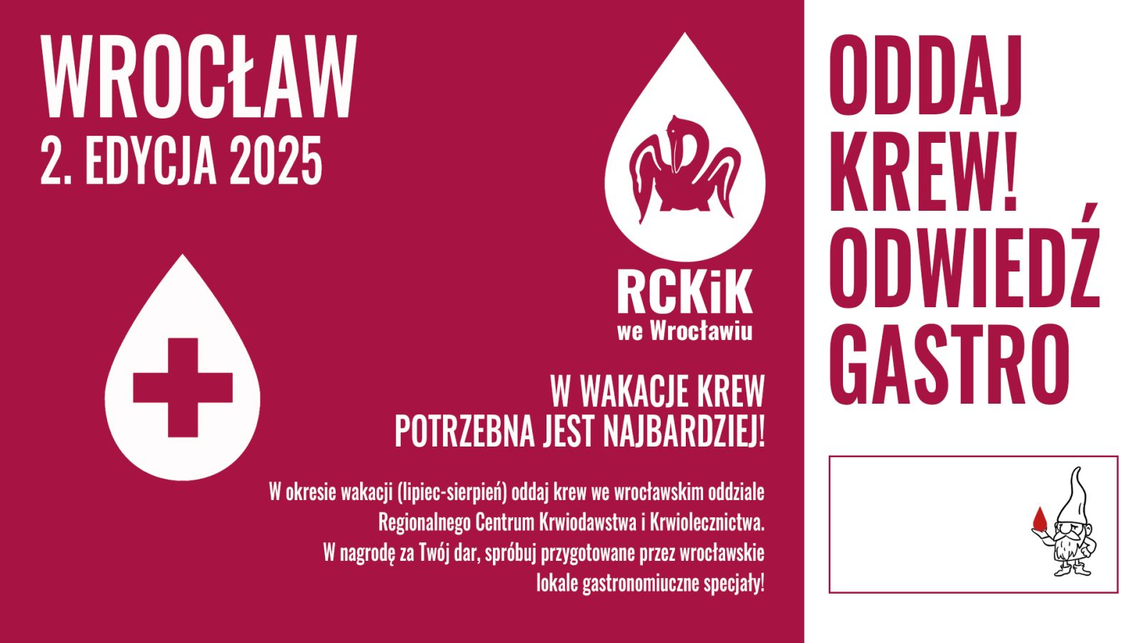 25.06.2025 » Już niebawem ruszy 2. edycja akcji "Oddaj Krew, Odwiedź Gastro". Ruszamy 4 lipca! Ostatni restauratorzy właśnie dołączają do akcji, dlatego pełną listę opublikujemy na początku tygodnia.