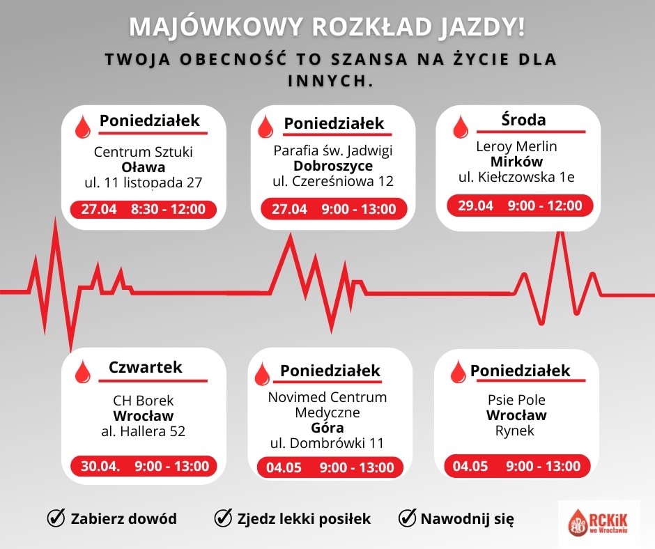 Lokalizacja: Pobieranie wymienionych grup krwi odbywa się wyłącznie stacjonarnie w siedzibie RCKiK we Wrocławiu oraz Terenowych Oddziałach w Głogowie, Legnicy i Lubinie.