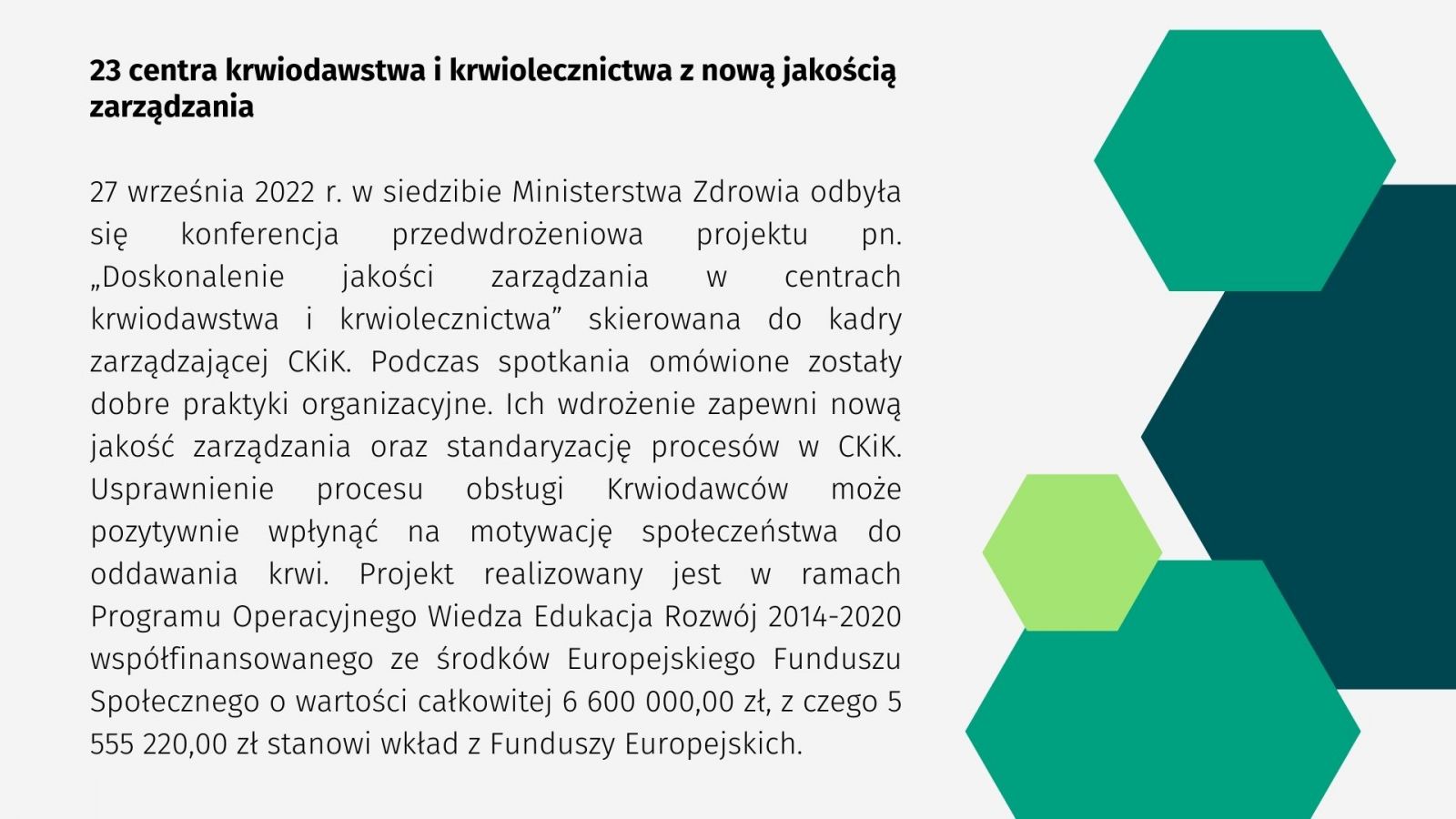 07.10.2022 » 23 centra krwiodawstwa i krwiolecznictwa z nową jakością zarządzania