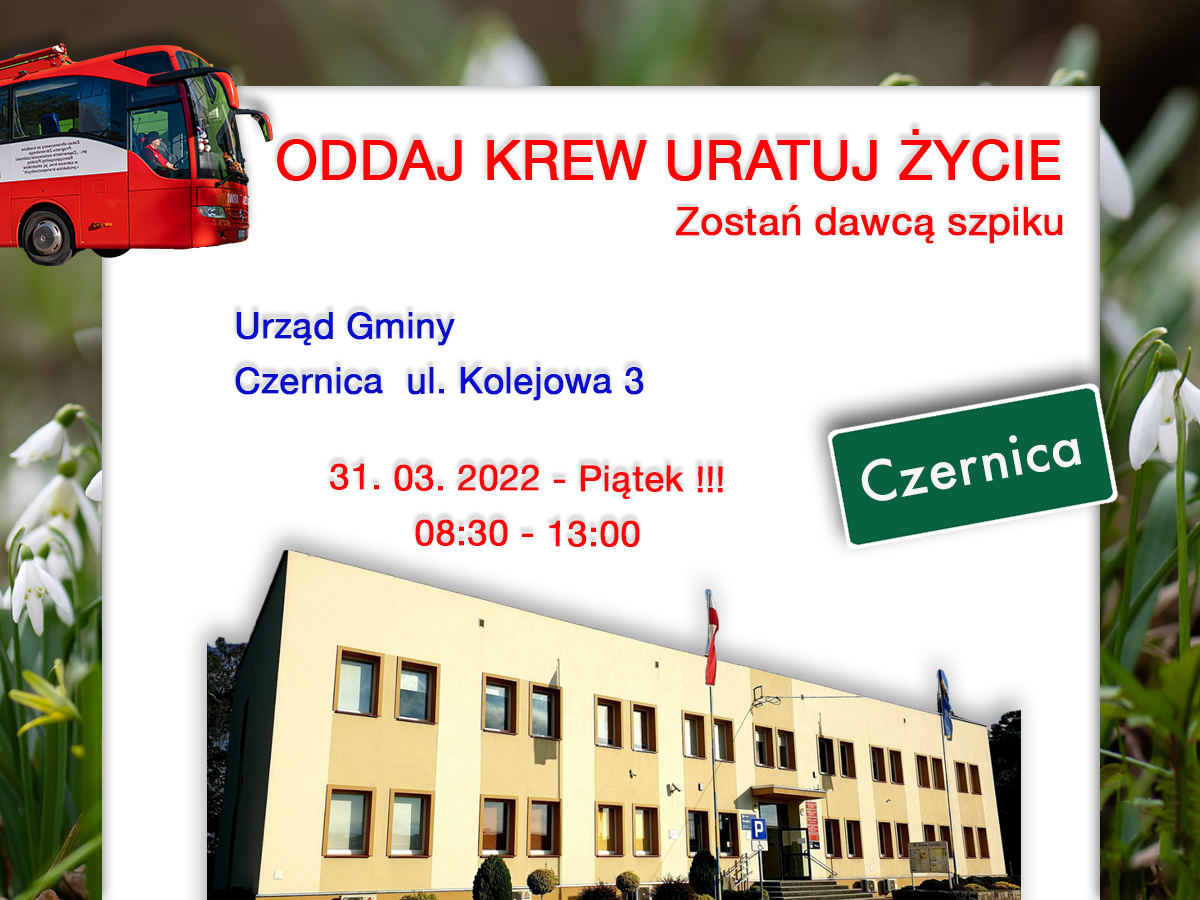 29.03.2023 » Akcja krwiodawstwa w Czernicy - 31.03.2023 r.