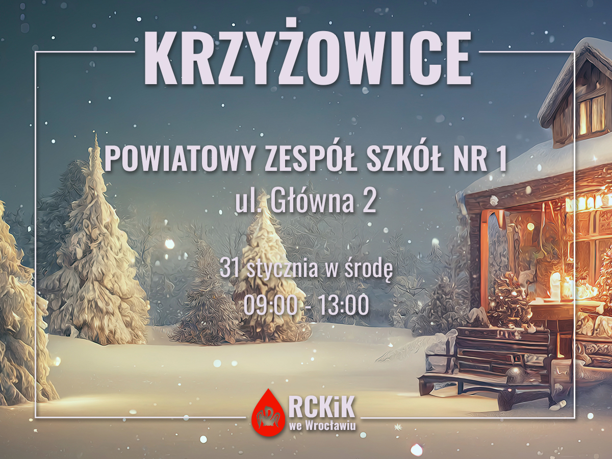 25.01.2024 » Akcja krwiodawstwa w Krzyżowicach - 31.01.2024 r.