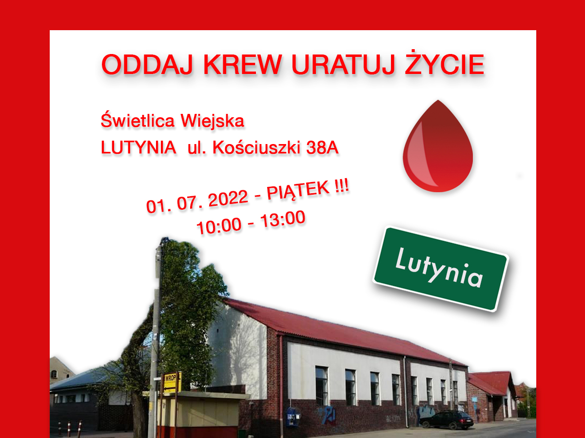 30.06.2022 » Akcja krwiodawstwa w Lutyni - 1.07.2022 r.