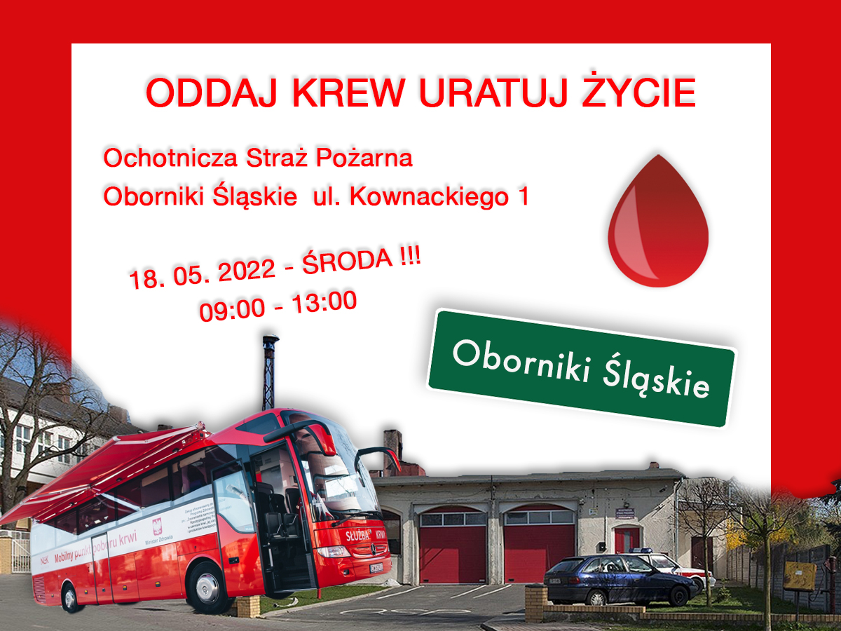 13.05.2022 » Akcja krwiodawstwa w Obornikach Śląskich- 18.05.2022 r.