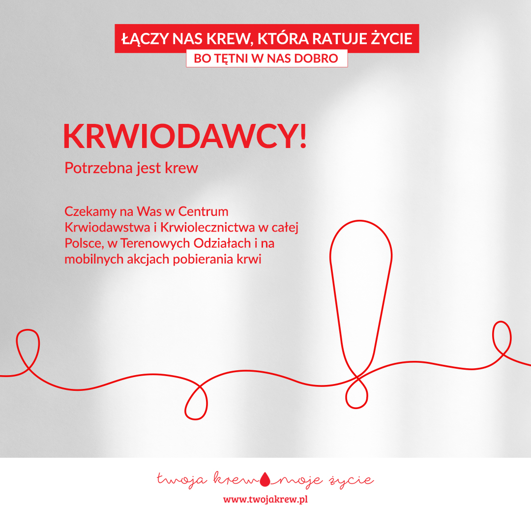 Już teraz zgłoś się do Regionalnego Centrum Krwiodawstwa i Krwiolecznictwa, Oddziału Terenowego lub na mobilną akcję pobierania krwi.