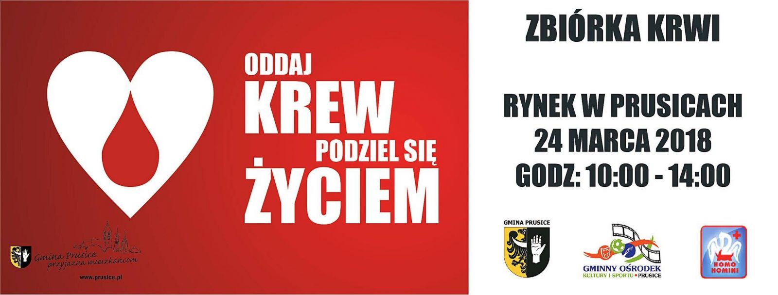 19.03.2018 » Gmina Prusice zaprasza do udziału w akcji krwiodawstwa - 24.03.2018 r.