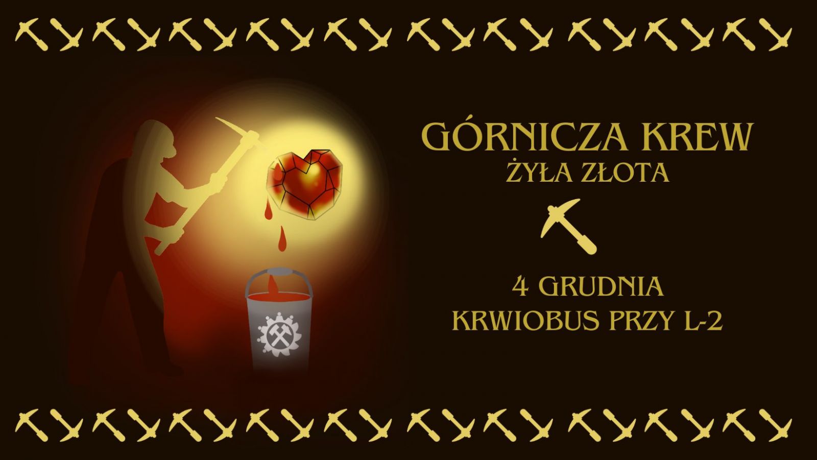 Samorząd Studencki Wydziału Geoinżynierii, Górnictwa i Geologii Politechniki Wrocławskiej serdecznie zaprasza do oddawania krwi podczas 5. edycji akcji pn. "Górnicza Krew". Odbędzie się ona dnia 4 grudnia br. w godzinach 9.00-13.00, GEOCENTRUM przy ul. Na Grobli 13 (bud. L-2)