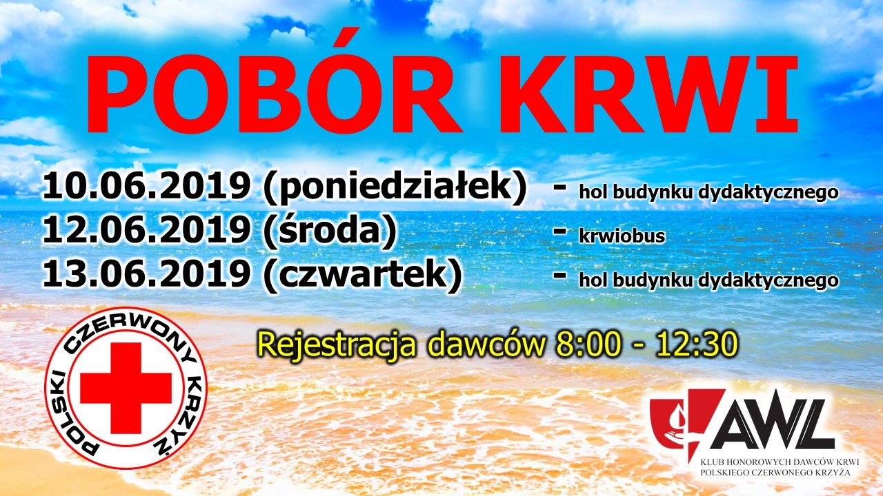 11.06.2019 » Klub HDK PCK przy AWL zaprasza do udziału w czerwcowych akcjach krwiodawstwa