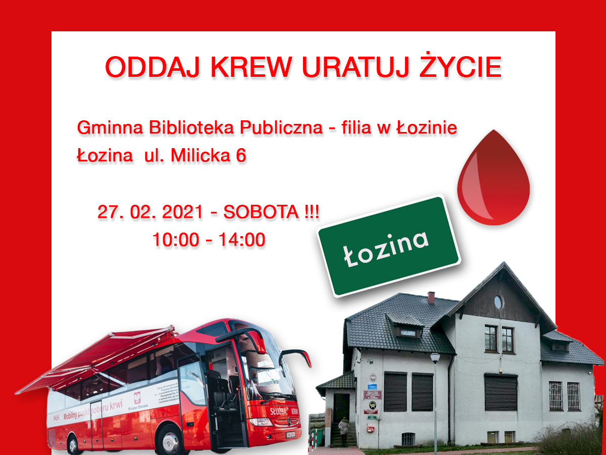 22.02.2021 » Klub HDK PCK przy UG w Długołęce zachęca do udziału w akcji krwiodawstwa - 27.02.2021 r.