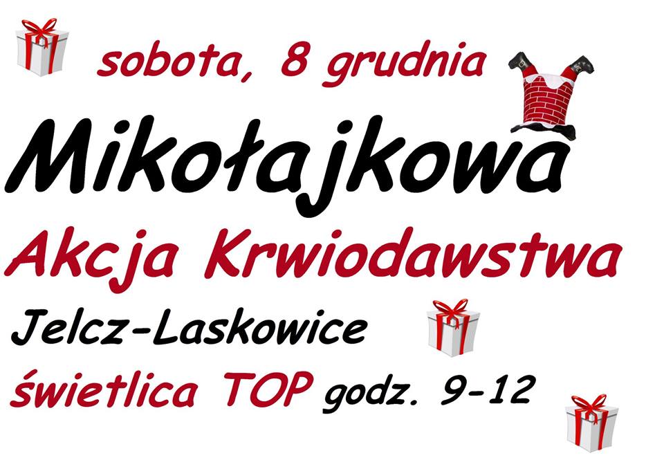 07.12.2018 » Mikołajkowa Akcja Krwiodawstwa w Jelczu-Laskowicach - 08.12.2018 r.