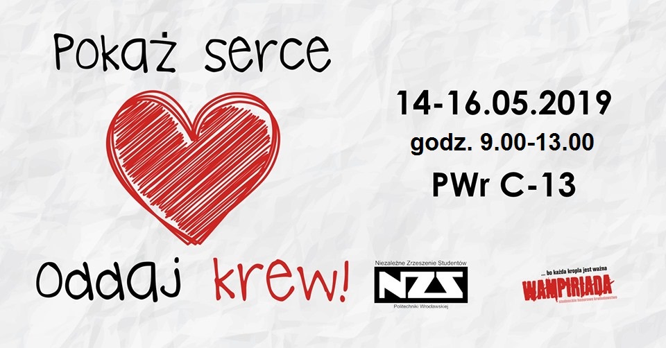 13.05.2019 » Pokaż serce! Oddaj krew! - Wampiriada NZS Politechniki Wrocławskiej