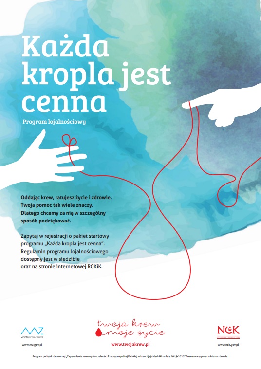 Uprzejmie informujemy, że zgodnie z programem polityki zdrowotnej pn. „Zapewnienie samowystarczalności Rzeczypospolitej Polskiej w krew i jej składniki na lata 2015-2020”, od dnia 22 grudnia 2016 r. wdrożyliśmy program lojalnościowy dla Krwiodawców. Jego celem jest zachęcenie obecnych i przyszłych Dawców Krwi do promowania postaw i zachowań pozytywnych społecznie. W ramach programu lojalnościowego opracowany został specjalny system, który polega na gromadzeniu przez Krwiodawców punktów za oddaną krew lub jej składniki, a następnie pozwala wymienić zebrane punkty na nagrody.