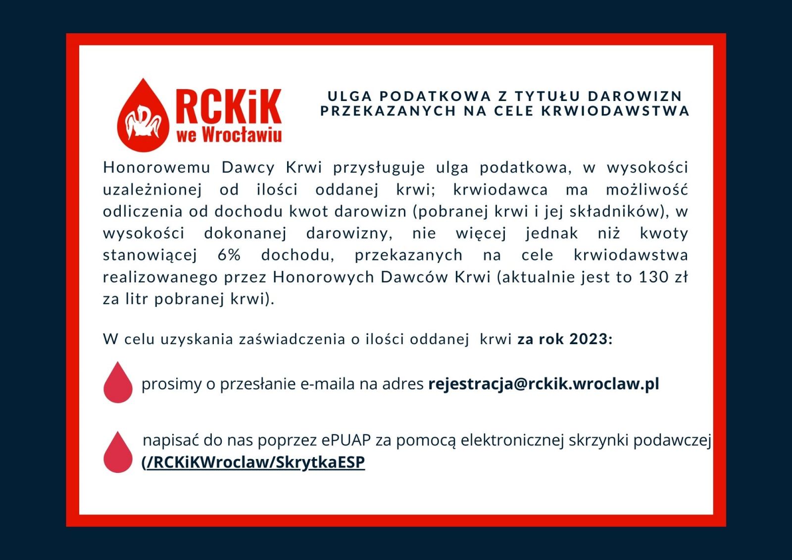 04.01.2024 » Ulga podatkowa z tytułu darowizn przekazanych na cele krwiodawstwa