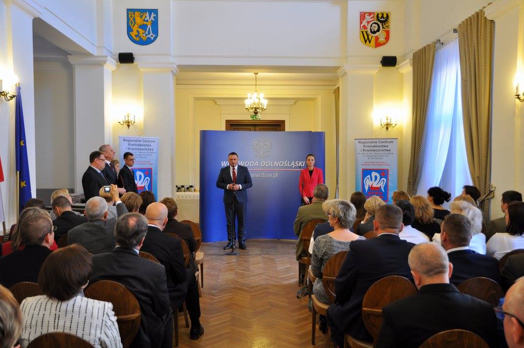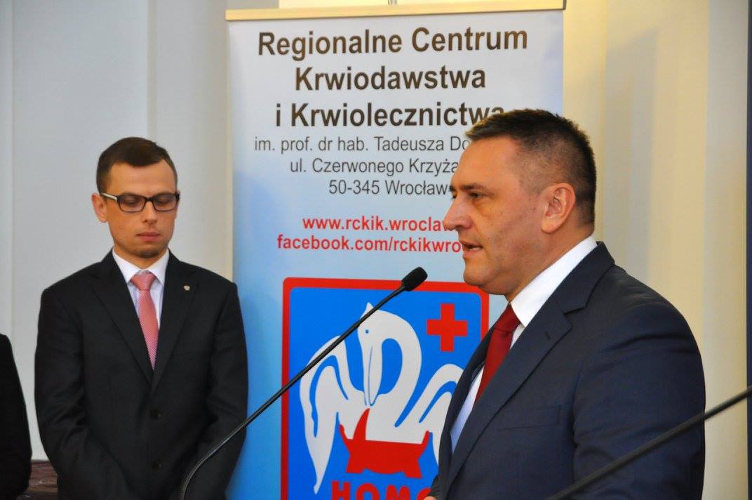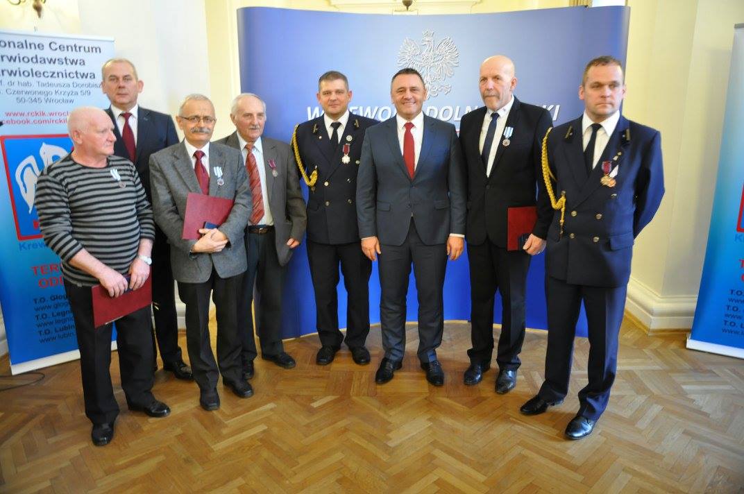 Z okazji Dni Honorowego Krwiodawstwa PCK dnia 24 listopada 2015 r., w Sali Kolumnowej Urzędu Wojewódzkiego we Wrocławiu, odbyła się uroczystość wręczenia odznaczeń najbardziej zasłużonym Honorowym Dawcom Krwi oraz szkołom i wyższym uczelniom - organizatorom akcji krwiodawstwa na Dolnym Śląsku. Wojewoda Dolnośląski Tomasz Smolarz odznaczył Krwiodawców Krzyżami Zasługi za osiągnięcia w działalności na rzecz honorowego krwiodawstwa oraz propagowanie idei czerwonokrzyskiej. Z upoważnienia Ministra Zdrowia wręczone też zostały odznaczenia nadawane zasłużonym Honorowym Dawcom Krwi w uznaniu wybitnych zasług na rzecz ratowania ludzkiego życia i zdrowia - "Honorowy Dawca Krwi - Zasłużony dla Zdrowia Narodu". Specjalne podziękowania oraz tytuł "Zasłużony dla RCKiK we Wrocławiu" otrzymały szkoły i wyższe uczelnie Dolnego Śląska aktywnie uczestniczące w krwiodawstwie. Wraz z podziękowaniami na ręce Dyrektorów szkół oraz przedstawicieli Samorządów Studenckich przekazany został pamiątkowy medal.