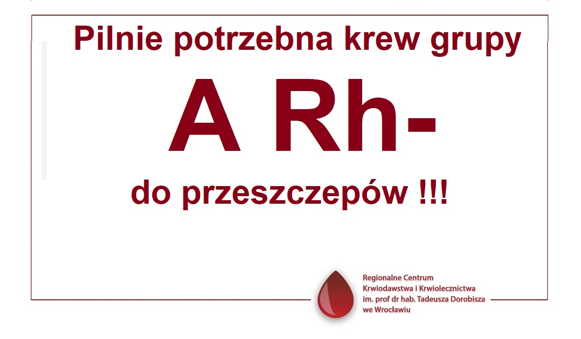07.12.2022 » Uwaga! Mamy pilny apel o krew grupy A Rh- ! Prosimy o udostępnianie ! W szpitalach są pacjenci do przeszczepów z tą właśnie grupą krwi!