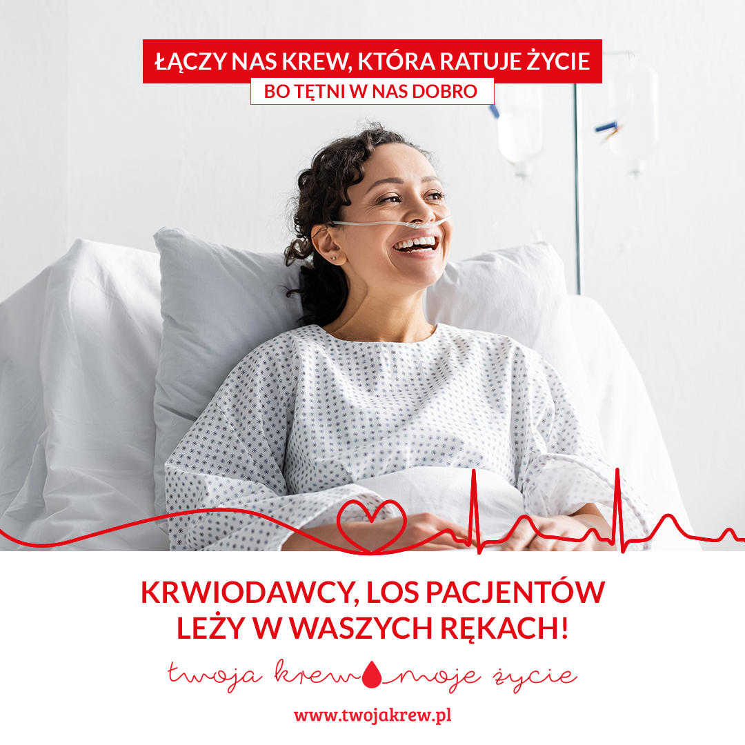 Czy wiecie, że w Polsce w ciągu roku przeprowadza się ok. 1,5 mln transfuzji krwi, które ratują ludzkie zdrowie i życie? Krew jest potrzebna codziennie. Jest także bezcennym lekiem, którego mimo postępu w nauce wciąż nie udało się wytworzyć w warunkach laboratoryjnych. Pamiętajcie, że los pacjentów wymagających leczenia krwią lub jej składnikami, leży w Waszych rękach.