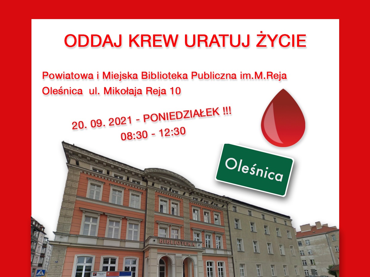 17.09.2021 » Uwaga zmiana miejsca akcji w Oleśnicy