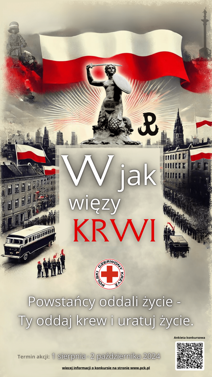 uprzejmie informujemy, że Polski Czerwony Krzyż z okazji 80. rocznicy wybuchu Powstania Warszawskiego organizuje akcję promocyjno-edukacyjną pn. „W jak więzy krwi”, mającą na celu uczczenie pamięci bohaterów tamtych dni oraz wsparcie osób potrzebujących krwi w dzisiejszych czasach.