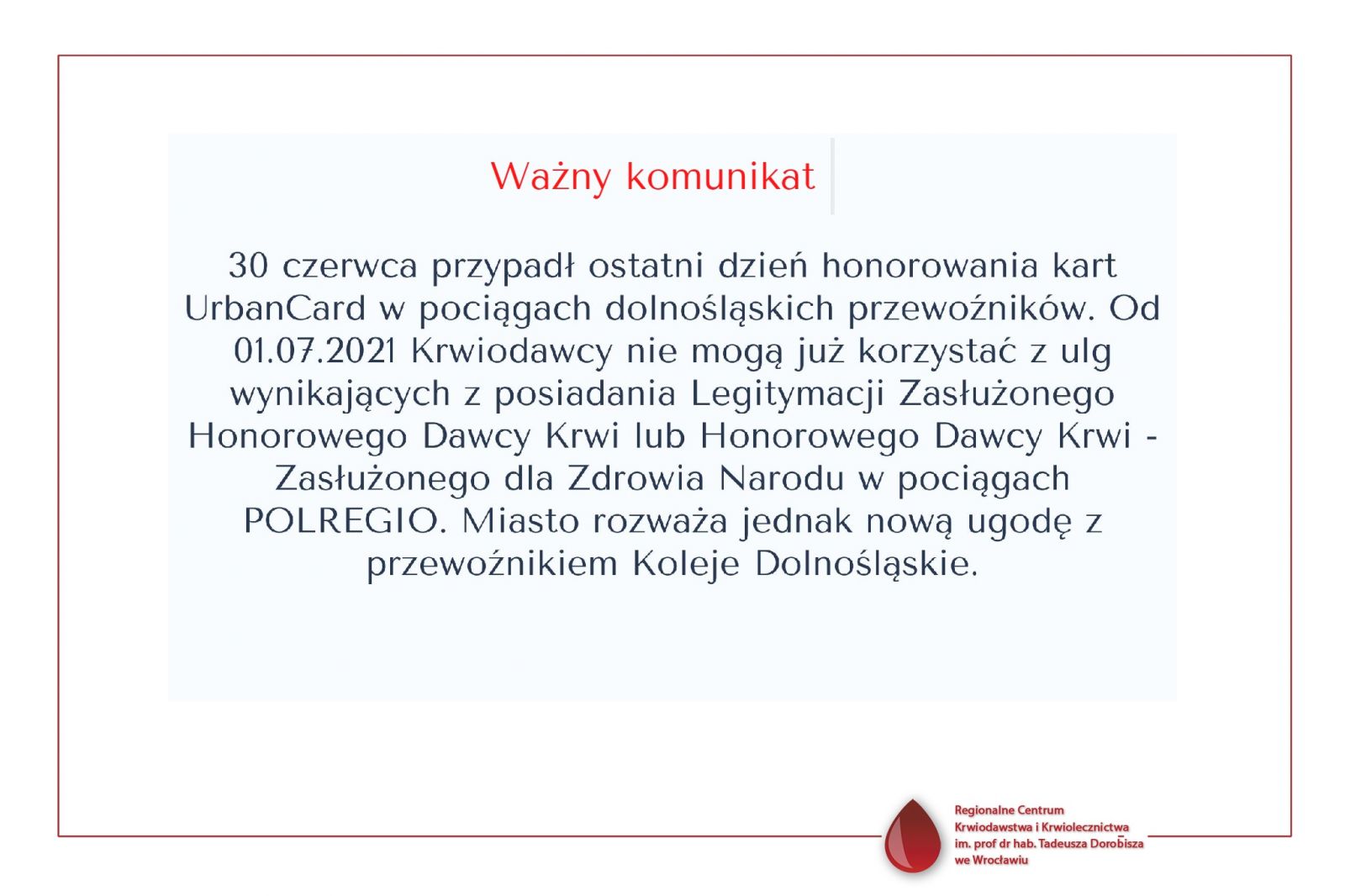 02.07.2021 » WAŻNE INFORMACJE DLA KRWIODAWCÓW