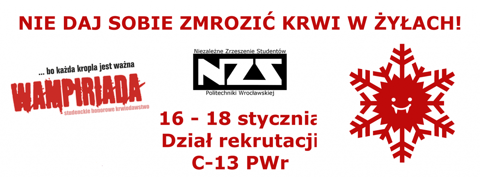 17.01.2018 » Wampiriada NZS Politechniki Wrocławskiej zaprasza do oddawania krwi