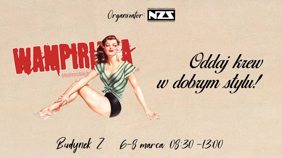 Niezależne Zrzeszenie Studentów Uniwersytetu Ekonomicznego zaprasza na wiosenną edycję Wampiriady– największej akcji honorowego krwiodawstwa w środowisku akademickim.