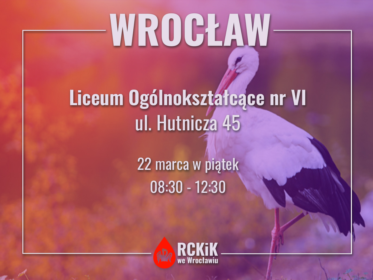21.03.2024 » Zapraszamy do oddania krwi w LO nr 6 we Wrocławiu - 22.03.2024 r.