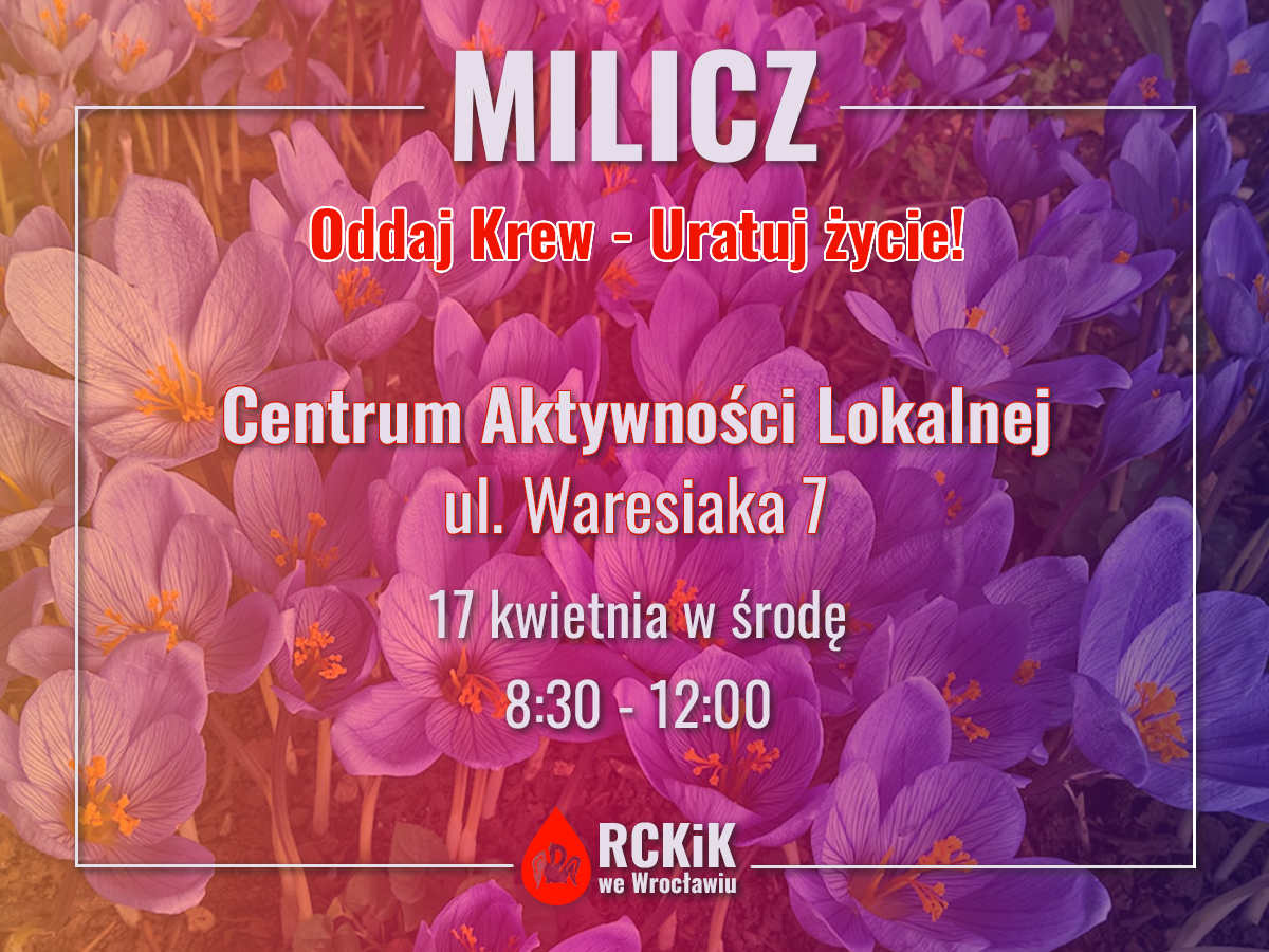 15.04.2024 » Zapraszamy do oddania krwi w Miliczu - 17.04.2024 r.