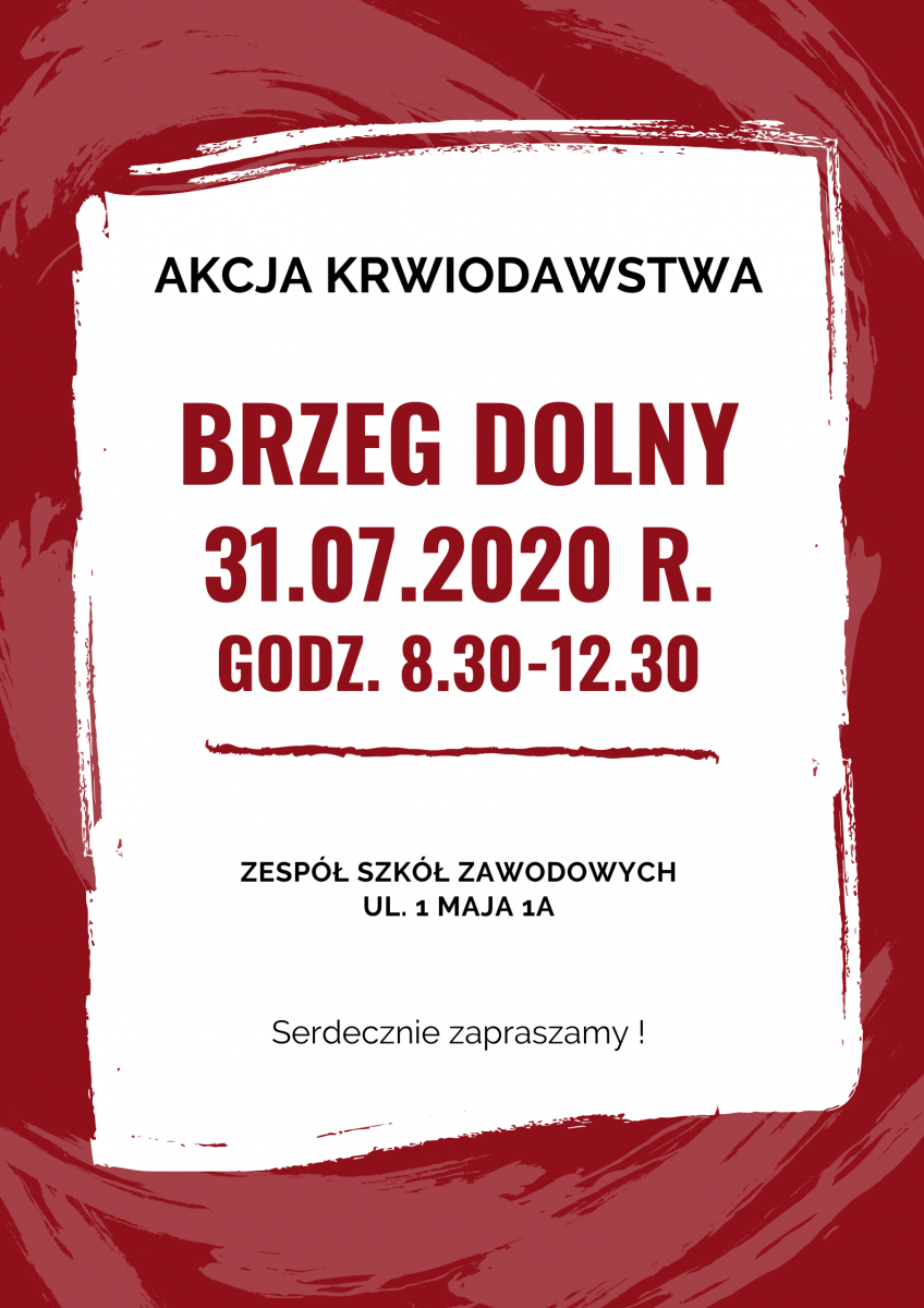 31.07.2020 » Zapraszamy do oddawania krwi w Brzegu Dolnym 31 lipca 2020 r.