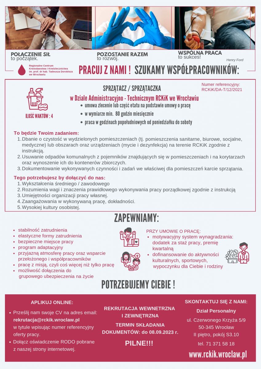 31.08.2023 » Zapraszamy do zapoznania się z ofertą pracy w RCKiK
