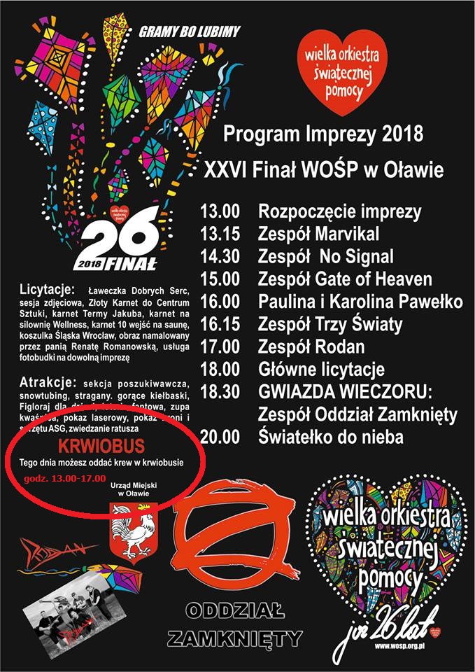 03.01.2018 » Zapraszamy na 26. WOŚP w Oławie !