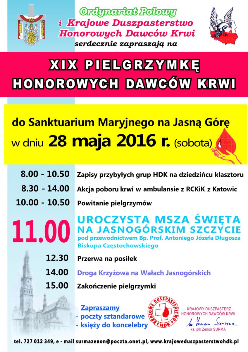 19.05.2016 » Zapraszamy na XIX Pielgrzymkę HDK na Jasną Górę