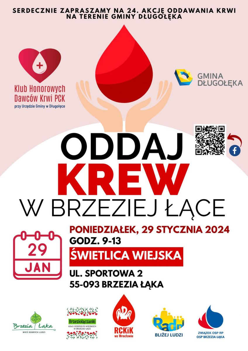 25.01.2024 » Zapraszamy na akcję krwiodawstwa do Brzeziej Łąki - 29.01.2024 r.