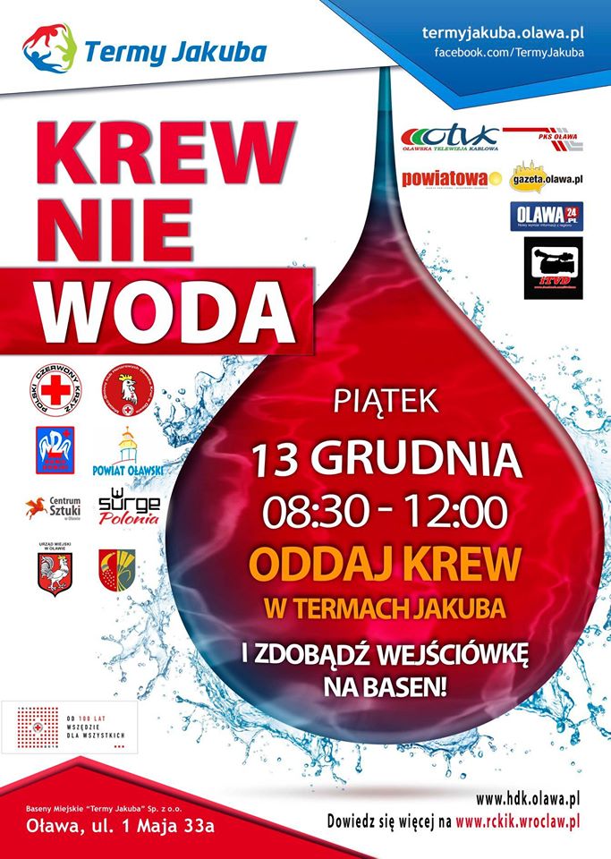 11.12.2019 » Zapraszamy na akcję krwiodawstwa do Oławy - 13.12.2019 r.