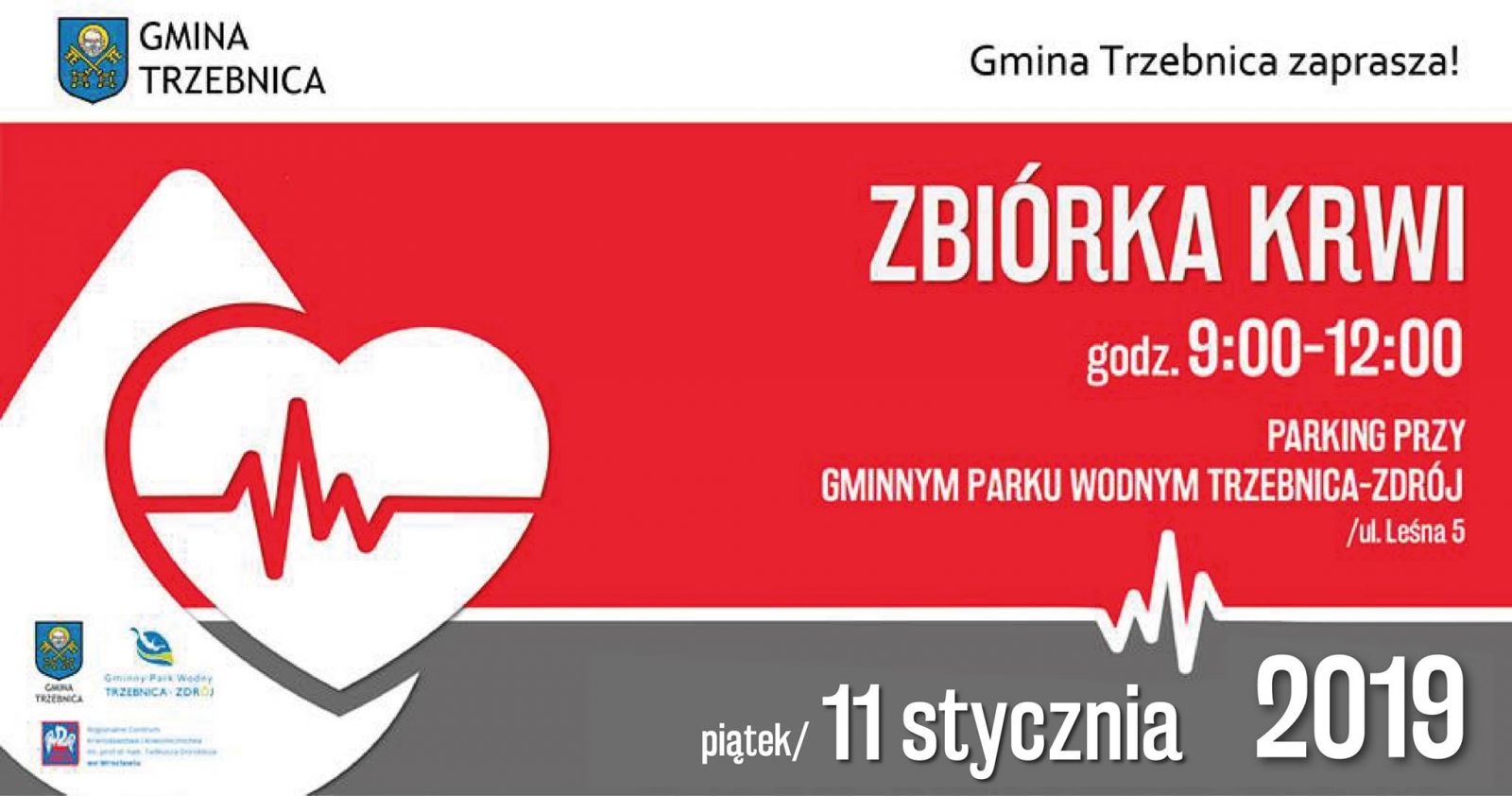 07.01.2019 » Zapraszamy na akcję krwiodawstwa do Trzebnicy - 11.01.2019 r.