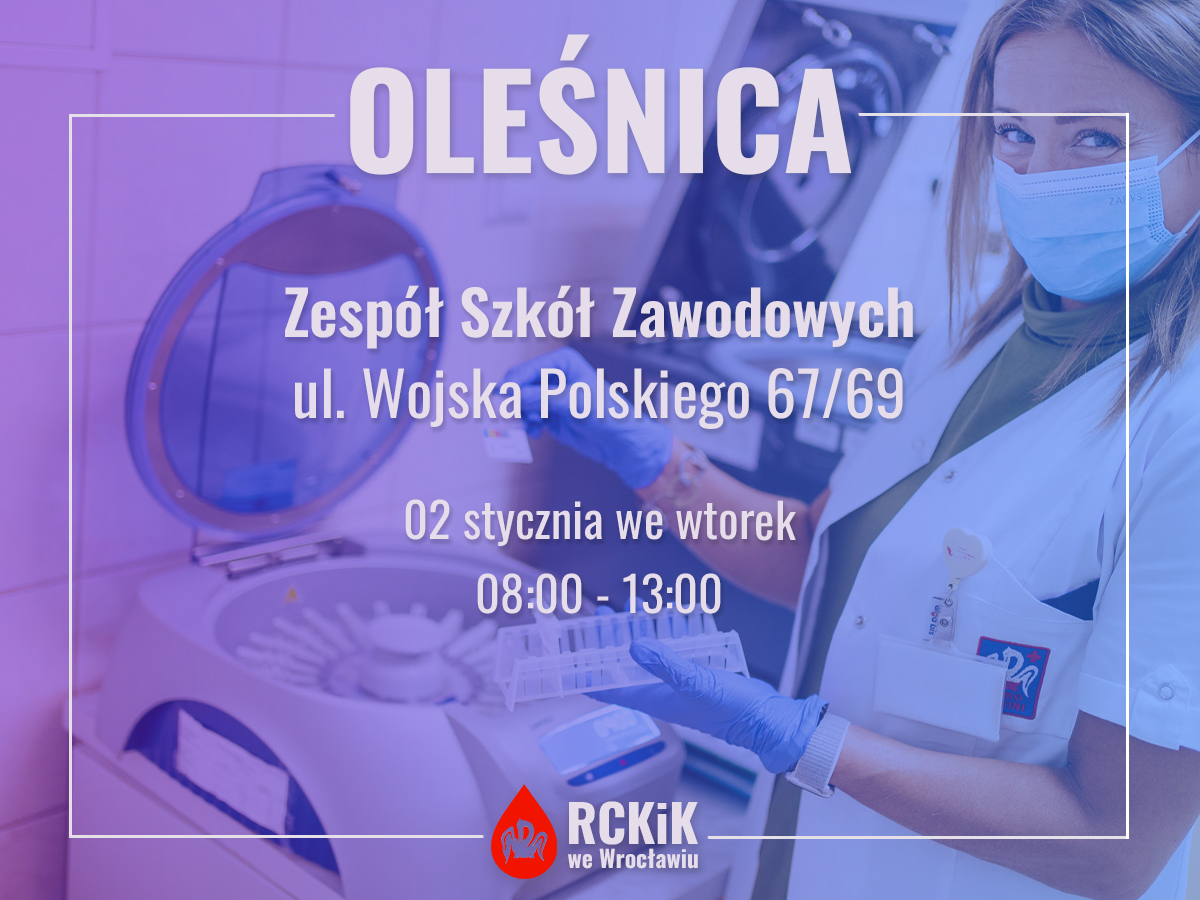 02.01.2024 » Zapraszamy na pierwszą w Nowym Roku akcję krwiodawstwa do Oleśnicy