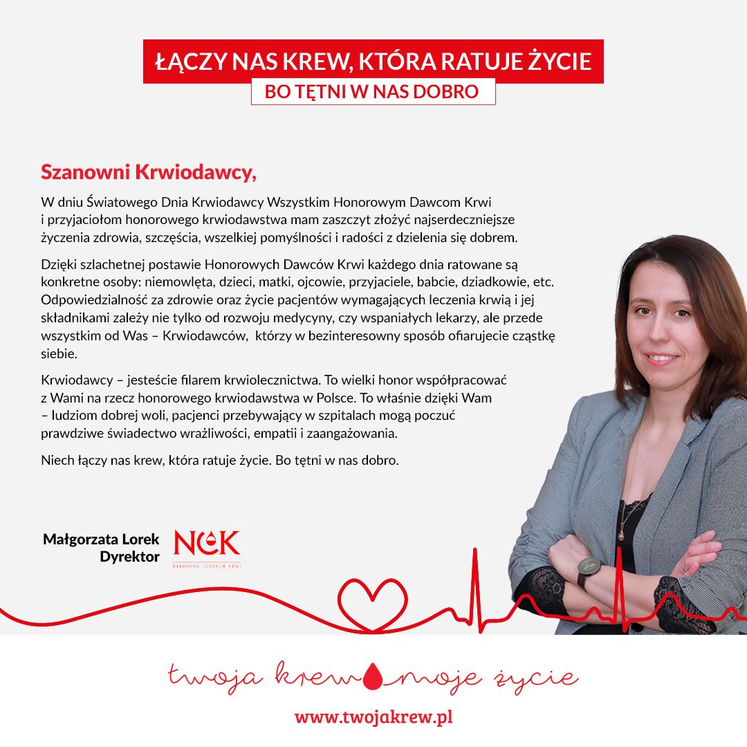14.06.2023 » Życzenia Dyrektora Narodowego Centrum Krwi z okazji Światowego Dnia Krwiodawcy
