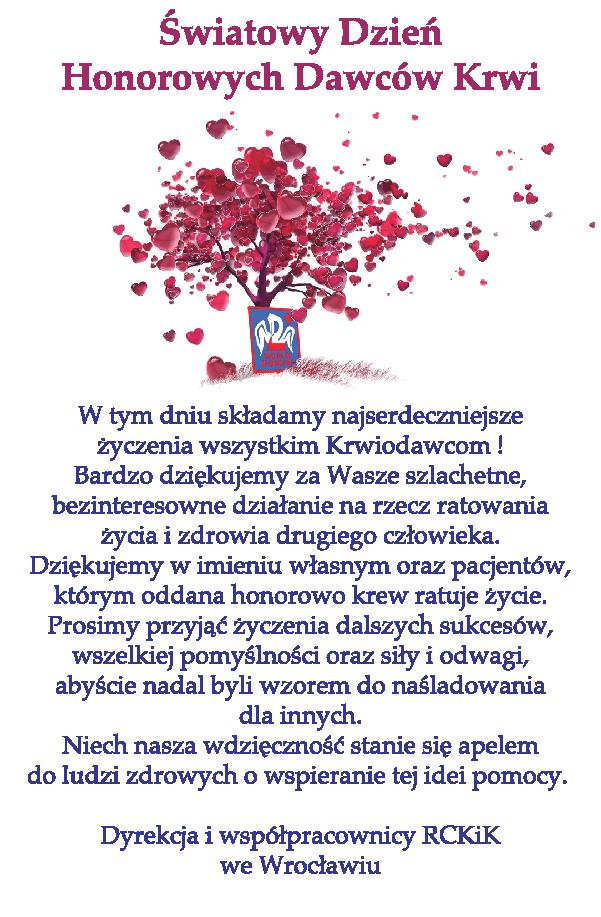 13.06.2016 » Życzenia z okazji Światowego Dnia Krwiodawcy