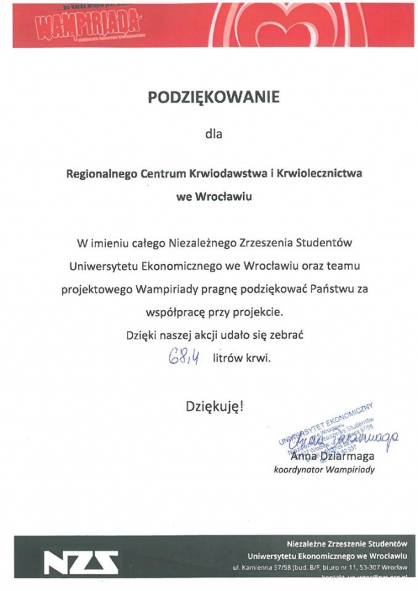 70-lecie Krwiodawstwa i Krwiolecznictwa na Dolnym Śląsku