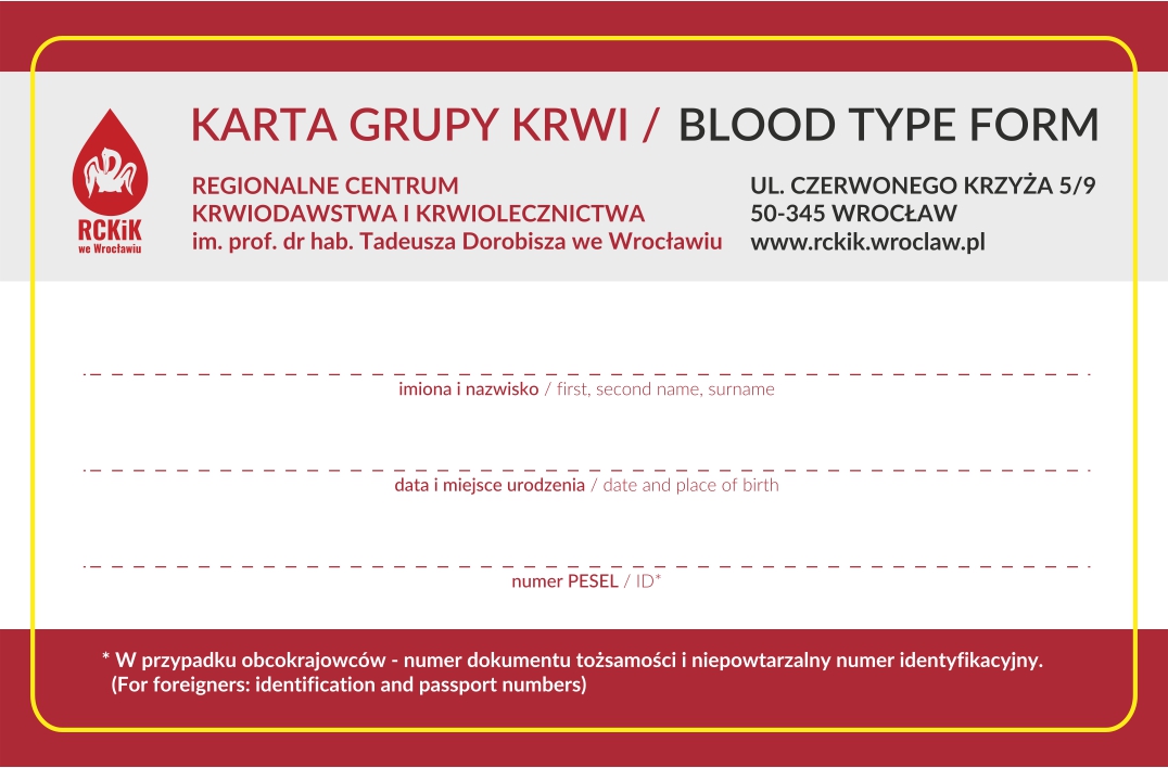 Przy kolejnym (czwartym) oddaniu zgłoś w rejestracji chęć wyrobienia swojej Krewkarty, wówczas pobierzmy dodatkową próbkę do badań, która jest niezbęda do wyrobienia karty.