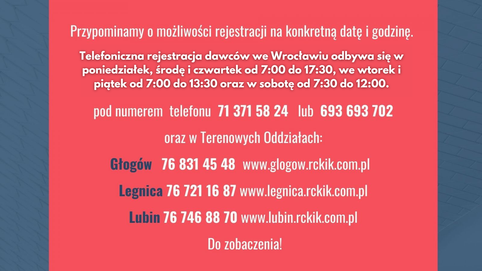 W trosce o bezpieczeństwo oraz komfort wszystkich osób przebywających w naszym Centrum, uprzejmie prosimy, aby nie przyprowadzać dzieci do Regionalnego Centrum Krwiodawstwa i Krwiolecznictwa we Wrocławiu, ani na akcje wyjazdowe.